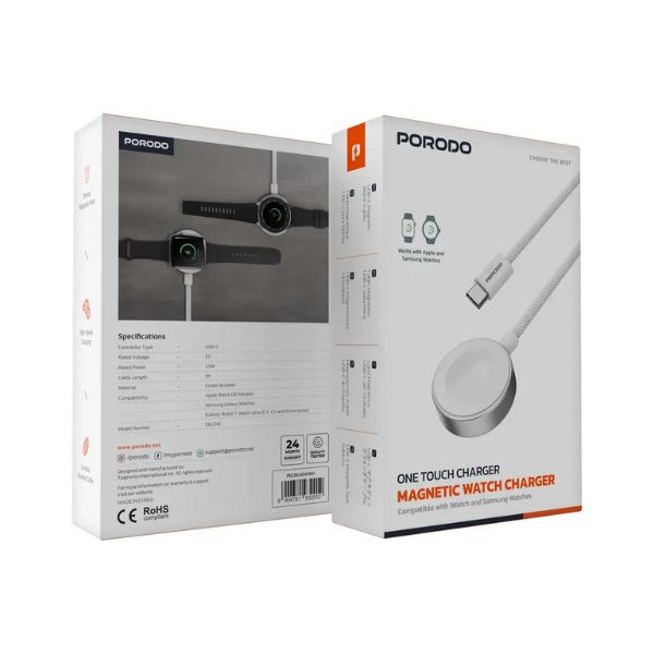 With the Porodo One Touch Charger Magnetic Watch Charger Type C, charging your smartwatch becomes effortless, fast, and secure. Its durability, magnetic hold, and compatibility make it a must-have accessory for smartwatch users who value convenience and efficiency.